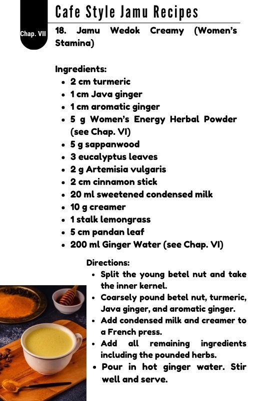 this ebook contain 31 recipes of jamu (indonesian herbs and spice drink) with cafe style. Jamu can be so tasty dan refresh, no more the bitter taste.