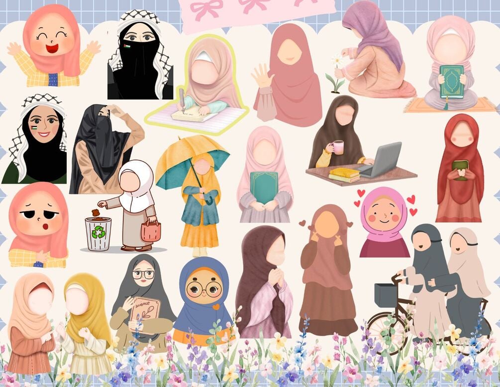 100+ Cute Muslimah Hijab Cartoon PNG for Sublimation