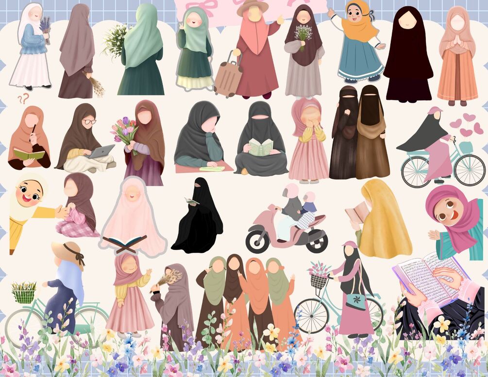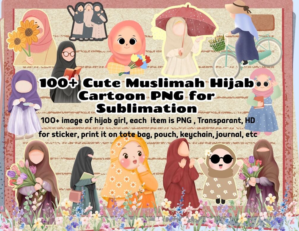 100+ cute hijab girl cartoon, each of image is PNG transparant background and HD